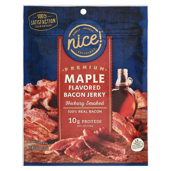 - The manufacturer of Maple Flavored Hickory Smoked Premium Bacon Jerky, Maple is Nice.