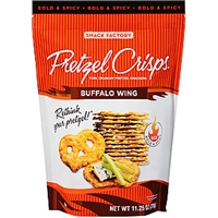 - The manufacturer of Pretzel Crisps, Buffalo Wing is Snack Factory.
