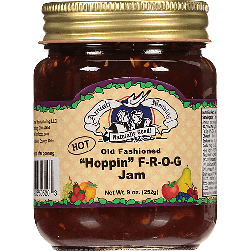 - The manufacturer of Hot Old Fashioned "Hoppin" F-R-O-G Jam, Hot Old Fashioned is Amish Wedding.