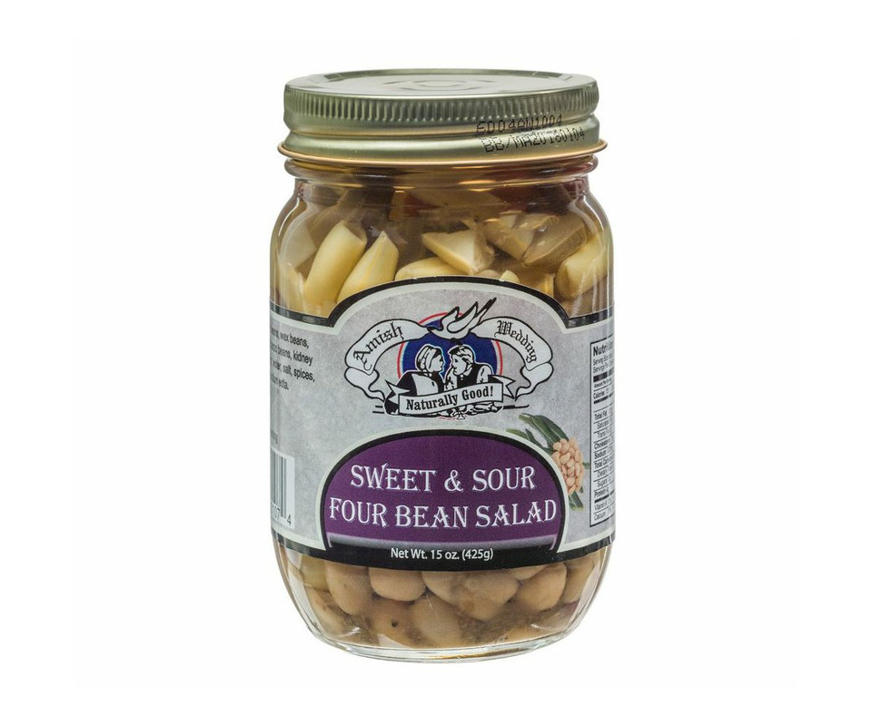 - The manufacturer of Four Bean Salad, Sweet & Sour is Amish Wedding.