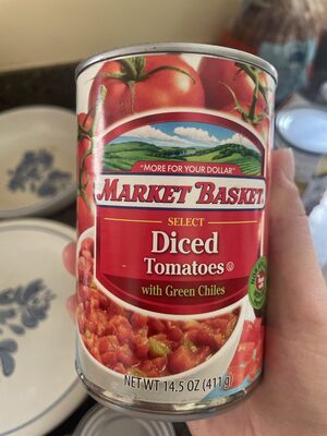 - The manufacturer of Diced Tomatoes with Green Chiles is Market Basket.