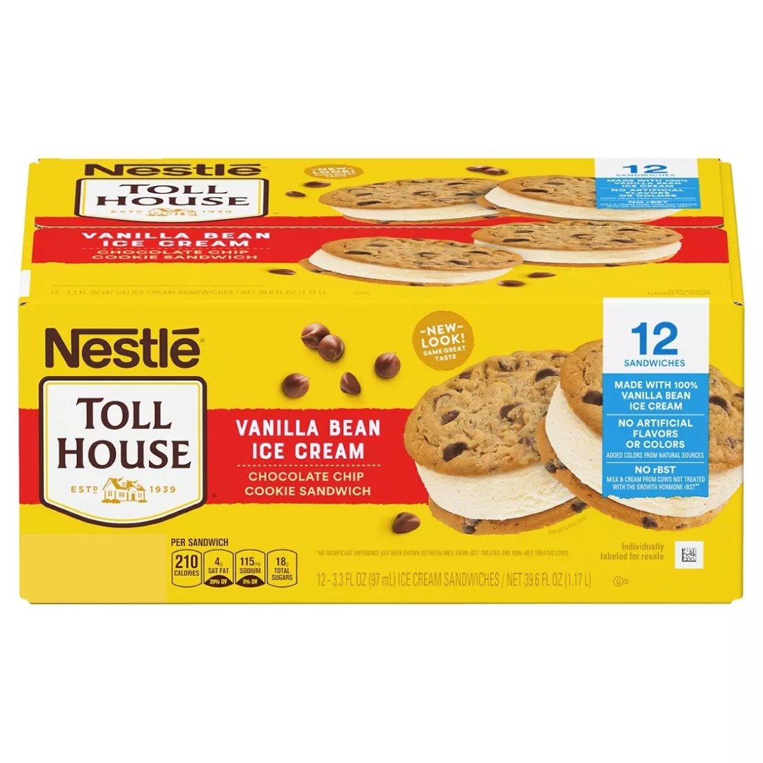 Nestle Toll House Vanilla Bean Ice Cream Chocolate Chip Cookie Sandwiches 12 ct.