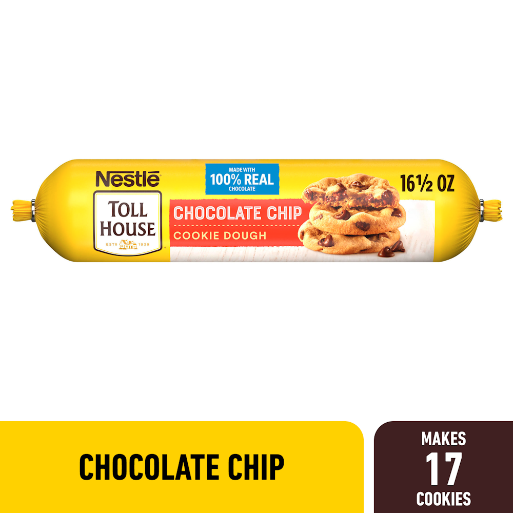 makes classic chocolate chip cookies in minutes for a treat the whole family will enjoy. This cookie dough is full of semi sweet morsels, for a cookie that delivers the rich, creamy semi-sweet chocolate taste you love from Nestle Toll House. This refrigerated cookie dough contains no preservatives, artificial flavors, or colors, and the chocolate chips are made with 100% real chocolate. Simply spoon heaping teaspoons of Nestle Toll House cookie dough onto an ungreased baking sheet and bake until golden brown.
