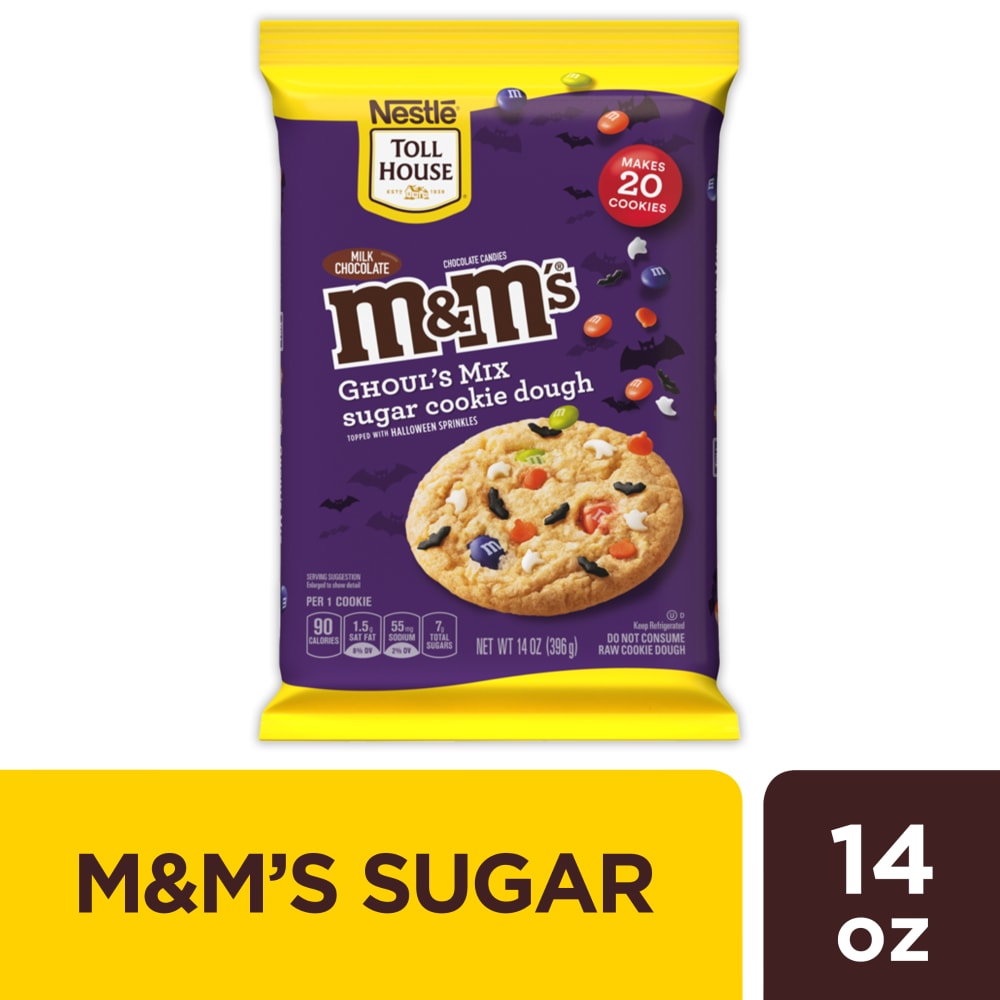Experience Halloween magic in every bite with Nestle Toll House Halloween Mix Sugar Cookie Dough. These limited edition cookies are packed with real milk chocolate M&M’S and topped with fun Halloween sprinkles. Whether you're hosting a Halloween party, handing out treats, or baking for a cozy night in, this dough makes it easy to serve up 20 freshly baked cookies with no mixing required. This ready to bake cookie dough can be made as is, or you can use it in your own unique recipes. These cookies deliver the trusted Toll House quality that has brought the joy of baking to homes for over 80 years — one sweet, shareable moment at a time.