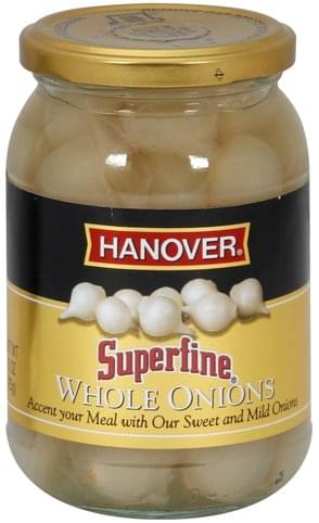 Hanover® Superfine® Whole Onions. Accent your meal with our sweet and mild onions. Net wt 15 oz (425g).