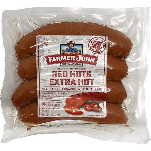 - The manufacturer of Red Hots Naturally Hardwood Smoked Sausage, Extra Hot is Farmer John.