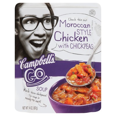 - The manufacturer of Soup, Moroccan Style Chicken with Chickpeas is Campbells.