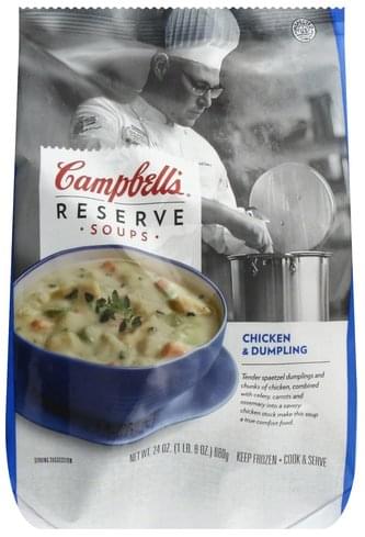 Tender spaetzel dumplings and chunks of chicken, combined with celery, carrots and rosemary into a savory chicken stock make this soup a true comfort food. Cook & serve. Inspected for wholesomeness by US Department of Agriculture. Our exceptional soups are inspired by chefs who are passionate about creating bold and complex flavors. These artisanal recipes combine colorful, high quality ingredients and al dente vegetables without adding preservatives. Savor our chef inspired soups, ready to enjoy in minutes from the comfort of home. Campbell's Reserve Soups are rooted in a rich history with 125 years of culinary experience. Making food delicious - it's what we do. - Thomas Griffiths, Certified Master Chef. Satisfaction guaranteed. If you have questions or comments, please call 1-888-482-8358. Please have code and date information from container. Visit our web site at www.campbellsoup.com.