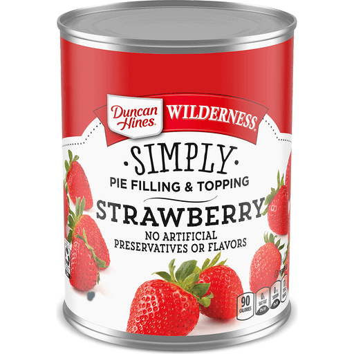 Wilderness Simply Strawberry Pie Filling & Topping is so simple, it is as if you made it yourself in the comfort of your own home. Each can comes with the freshest fruits picked at their peak with nothing more than a little lemon juice, starch, sugar and a pinch of salt. That's why this Duncan Hines pie filling, 21 oz is called Simply Strawberry. It is free of fat, artificial preservatives or added colors. Top off your favorite foods with the wonderful flavor of Wilderness Simply Strawberry Pie Filling & Topping.
