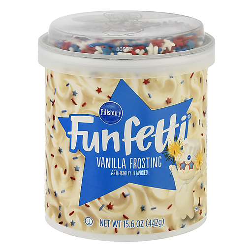 - The manufacturer of Funfetti, White Frosting, White is Pillsbury.