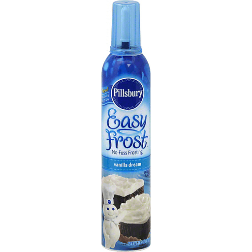 Pillsbury Easy Frost No-Fuss Frosting Vanilla Dream. Artificially Flavored. Frost cupcakes, cookies, brownies and cakes with ease! Easy Frost No-fuss frosting has the same delicious taste as our Pillsbury tub frosting now in an easy-to-dispense can! Pillsbury, The Barrelhead Logo, and The Doughboy Character are trademarks of the Pillsbury Company, LLC, used under license.