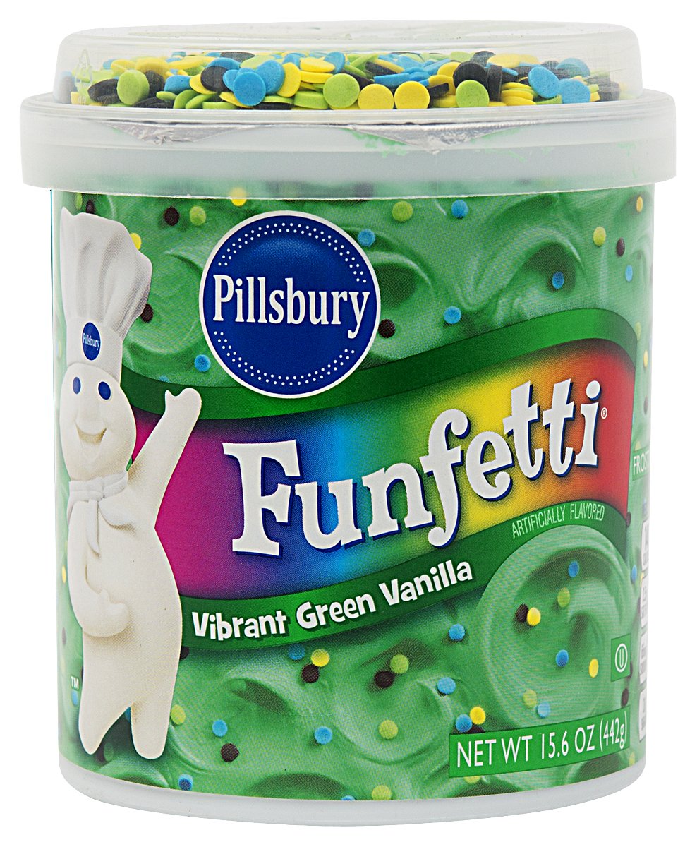 - The manufacturer of Funfetti Frosting, Vibrant Green Vanilla is Pillsbury.
