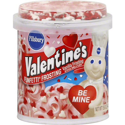 Top your cakes, cookies, and desserts with Pillsbury Funfetti® Valentine's Frosting.