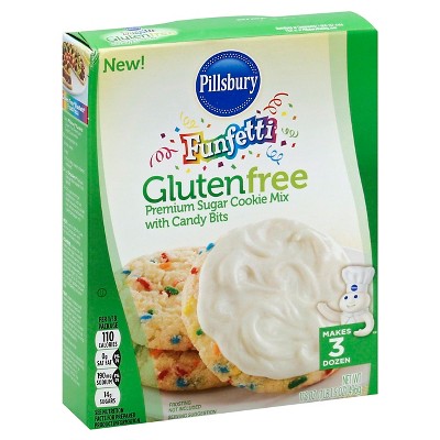 Pillsbury Funfetti® Gluten Free Premium Sugar Cookie Mix with Candy Bits. New! Per 1/18 package. 110 calories. 0g sat fat, 0% DV. 190mg sodium, 8% DV. 14g sugars. See nutrition facts for prepared product information. Frosting not included. Makes 3 dozen. Pillsbury, gluten free, quick bread. Pillsbury, Funfetti, gluten free. Pillsbury, creamy supreme. Try our other gluten free products! Made with 35% recycled fiber. For more baking fun visit pillsburybaking.com. Questions or comments 1-800-767-4466. Visit us at pillsburybaking.com. ©/® The J.M. Smucker Company. Pillsbury, The Barrelhead logo and the Doughboy Character are trademarks of the Pillsbury Company, LLC, used under license.