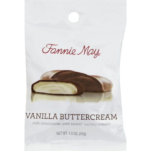 - The manufacturer of Milk Chocolate with Sweet Vanilla Cream, Vanilla Buttercream is Fannie May.