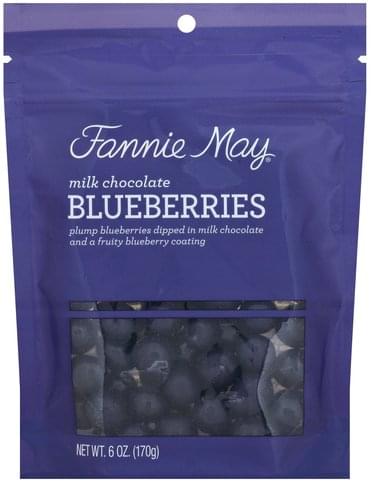 - The product category for Fannie May, Milk Chocolate, Blueberries, Blueberries is Candy & Chocolate.