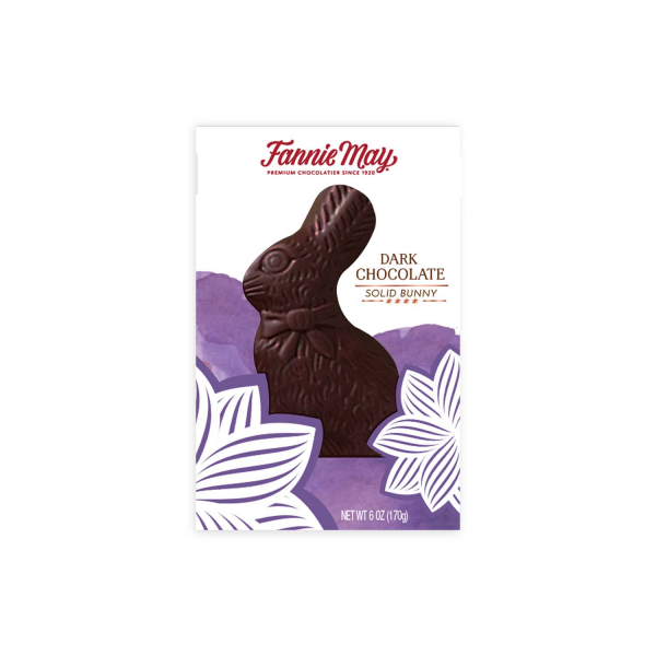 The quintessential spring treat. A solid chocolate bunny made with Fannie Mays signature dark chocolate that is sure to delight kids and adults alike.For 100 years, Fannie May has been crafting delicious chocolates with love, passion and the very best ingredients. Made with premium chocolate.