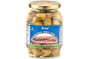 Sadaf Olive Green Pitted Jar in 23.8oz jar. Foods Hand Selects Its Olives From Olea European Olive Trees Found In Most Mediterranean Countries.