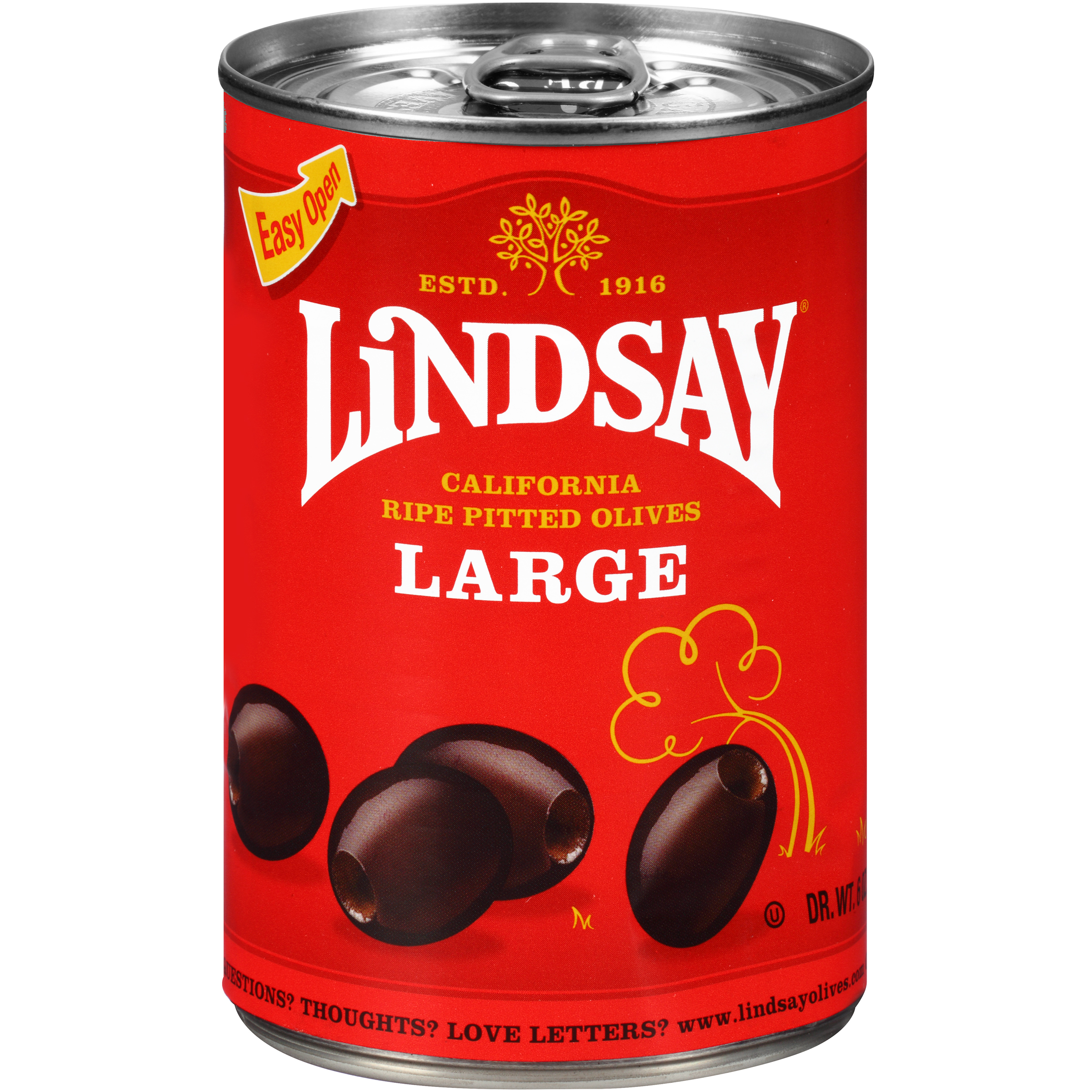 - The manufacturer of California Ripe Pitted Large Olives is Lindsay.
