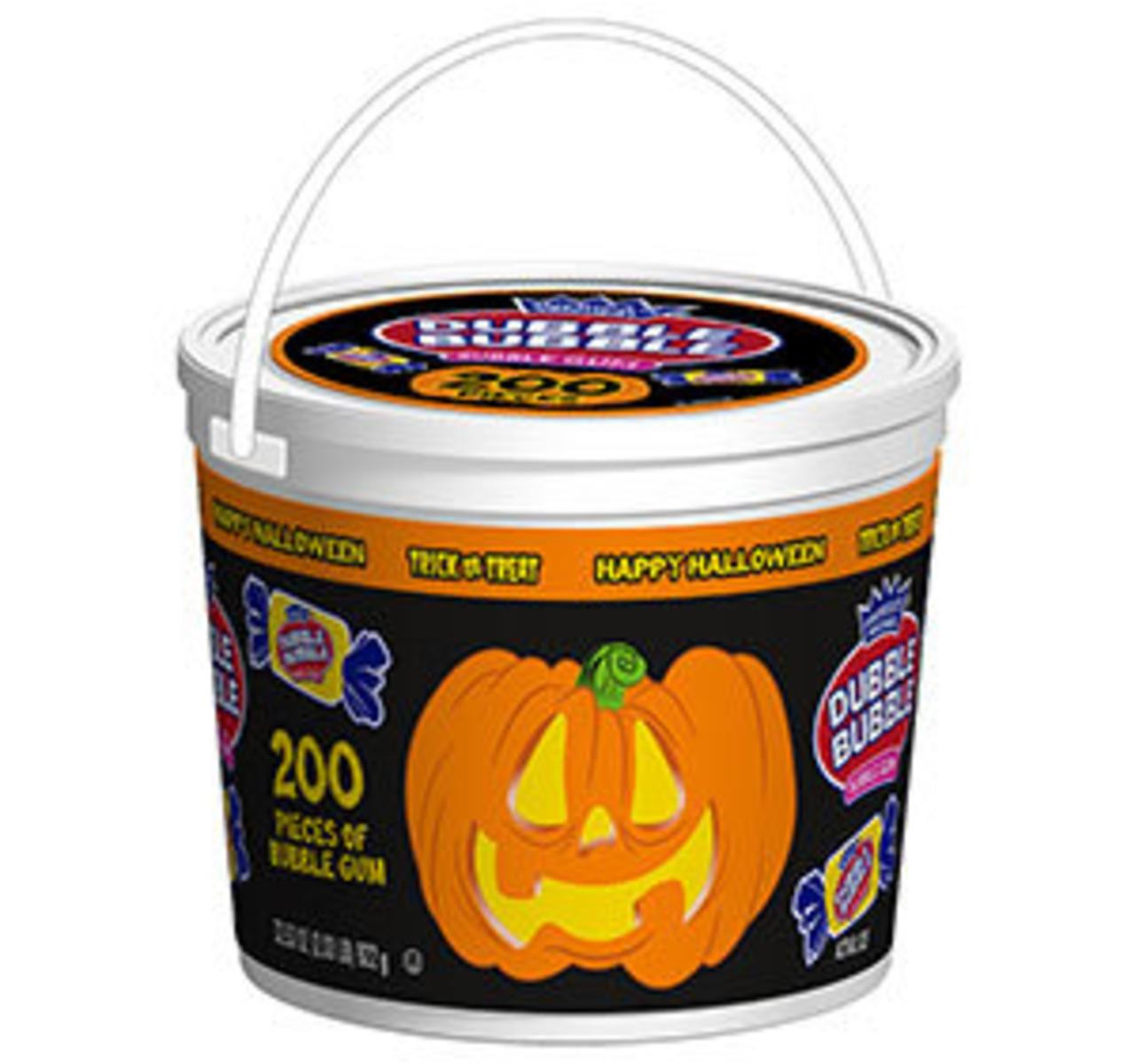 America s Original Dubble Bubble Bubble Gum -- Halloween themed tub of chewing gum -- 200 pieces of the classic pink bubble gum -- Each tub weighs 2.03 pounds (922g) -- Perfect for trick or treat party favors birthday parties or piñatas.
