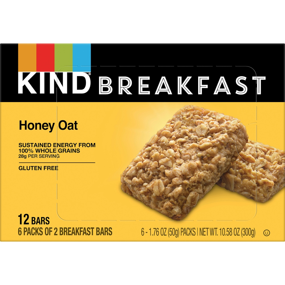 KIND Breakfast Honey Oat bars are a wholesome, healthy snack made with 100% whole grains for sustained energy. KIND Honey Oat breakfast bars are made with five super grains—oats, buckwheat, millet, amaranth and quinoa—and baked with a touch of honey for a chewy, soft baked addition to your breakfast. These KIND bars come in individually wrapped two bar packs that are perfect for convenient, on-the-go gluten free snacks. Each two bar pack has at least one full serving of whole grains. KIND Breakfast bars help provide sustained energy whether you need a nutritious snack for your lunchbox or nutrition bars to grab on your way out the door. Made with quality, wholesome ingredients, these gluten free breakfast bars contain 28 grams of whole grains per serving and 0 grams of trans fat. These healthy snacks are also dairy free and made without genetically engineered ingredients.