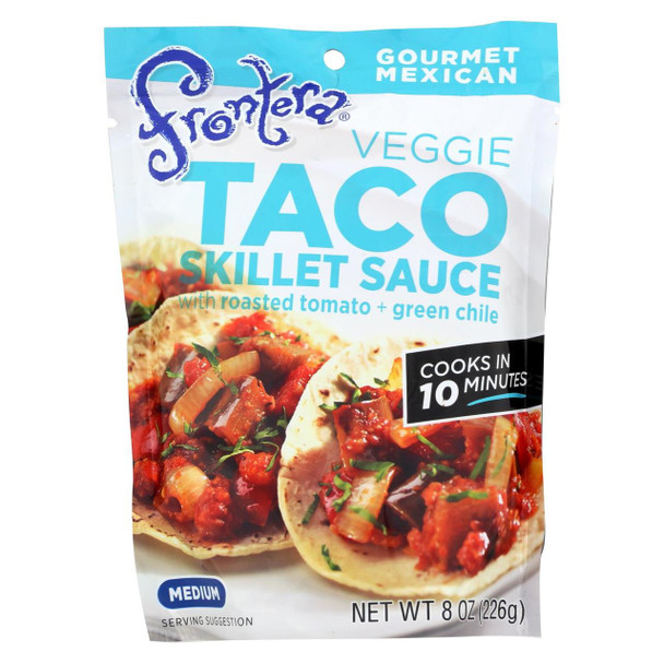 - The manufacturer of Medium Veggie Taco Skillet Sauce with Roasted Tomato & Green Chile, Veggie is Frontera.