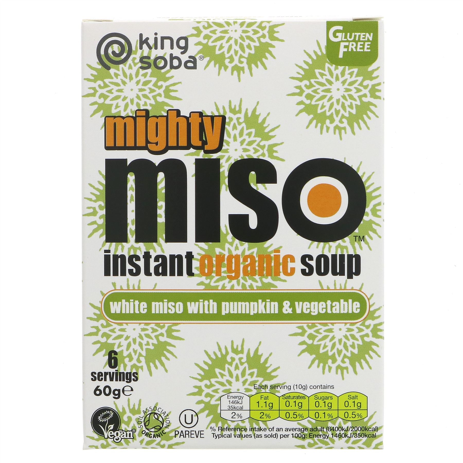 King Soba Organic Mighty Miso Soup with Pumpkin and Vegetable is wheat & gluten free and delicious, convenient and nutritious. Eat Mighty Miso daily and feel great!