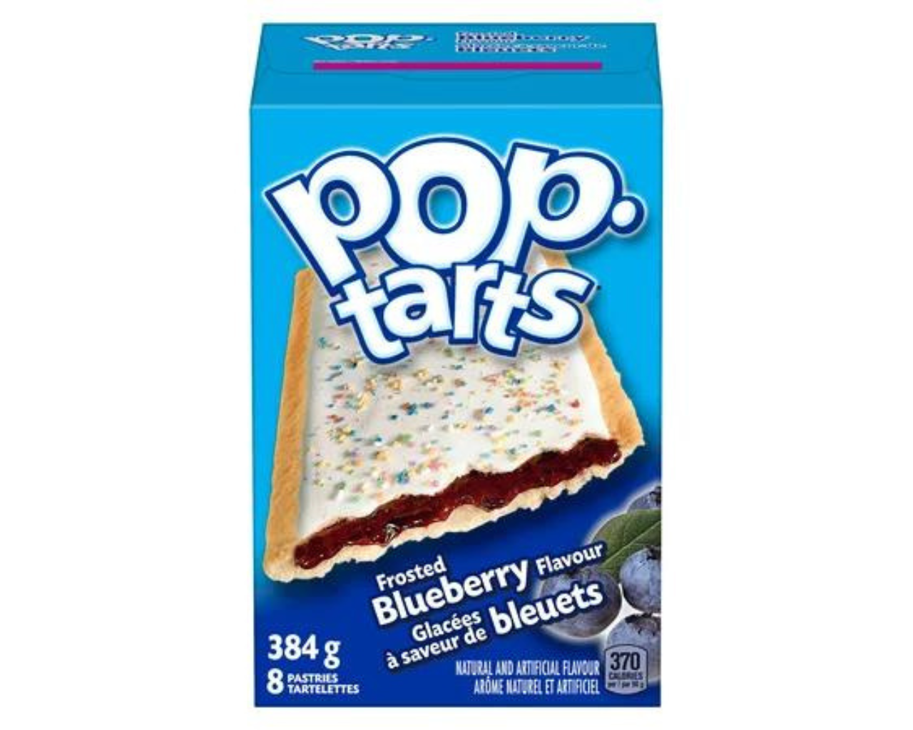 Toasted, frozen, or straight from the box ; add a little fun to your day with Pop-Tarts Frosted Blueberry toaster pastries. A delicious golden crust, stuffed with filling made with real fruit, frosted with icing & topped with coloured sprinkles. A fun & fruity way to awaken your senses. 8 pasteries.