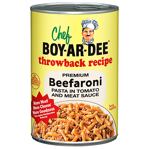 - The product category for Beefaroni Premium Pasta in Tomato and Meat Sauce, Beefaroni is Pasta & Noodles.