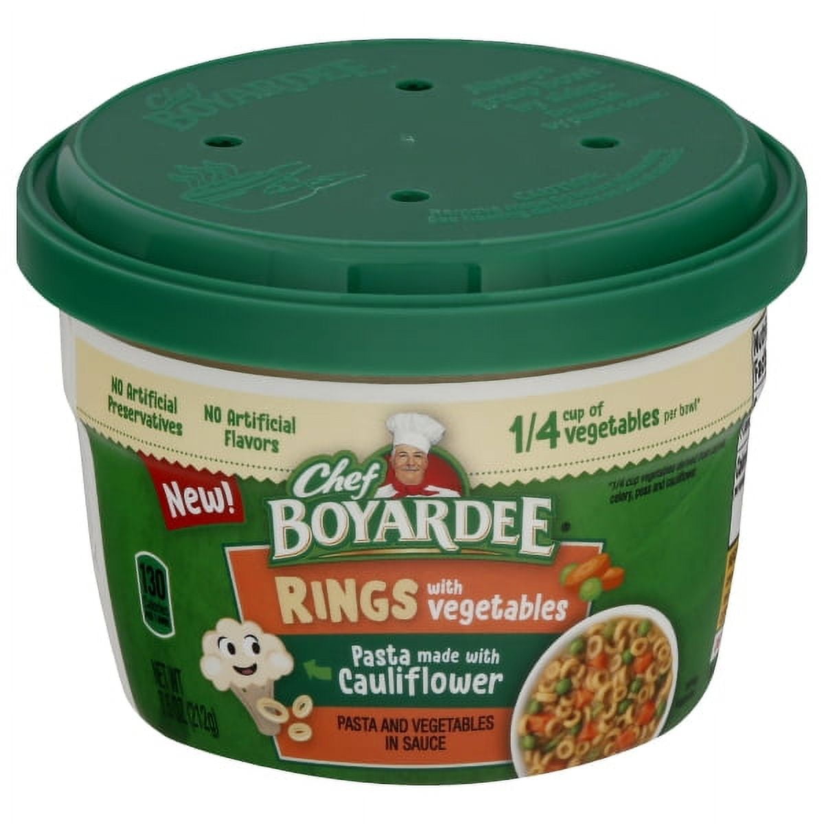 - The manufacturer of Rings with Vegetables Pasta and Vegetables in Sauce, Rings with Vegetables is Chef Boyardee.