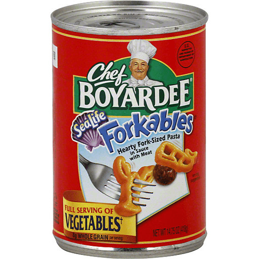 *See back panel for ingredients used to preserve quality. U.S. inspected and passed by Department of Agriculture. Good stuff inside. 1/2 cup of vegetables per serving. Good source of 7 vitamins & minerals. 8g of protein per serving. Hector Boiardi. In 1924 Chef Hector Boiardi's (Boyardee) restaurant was so popular he began bottling his signature sauce in jars for his customers to take home. Today, Chef Boyardee maintains its quality by using ingredients such as vine ripened California tomatoes and wholesome pasta. Steel. Please recycle when empty. ConAgra Foods®. Food you love. Questions or comments, visit us at www.chefboyardee.com or call Mon.-Fri., 9:00 AM-7:00 PM (CST), 1-800-544-5680 (except national holidays). Please have entire package available when you call so we may gather information off the label.