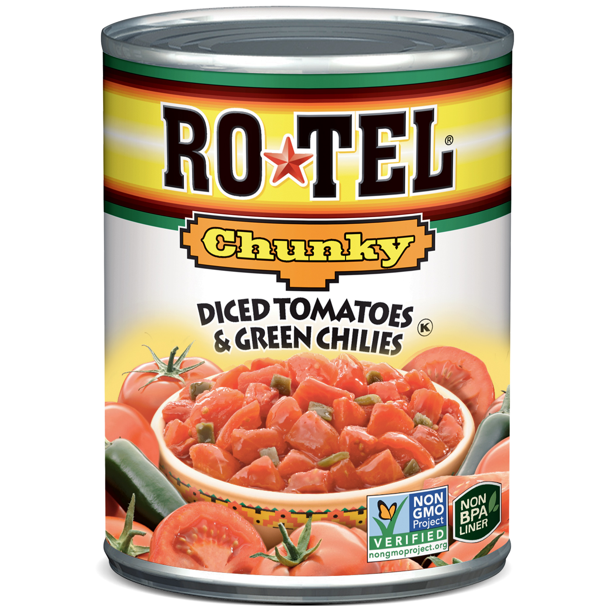 Ro-Tel Chunky is the same great taste as original Ro-Tel with larger, chunky diced tomatoes. Ro-Tel is the original Texas family recipe of juicy, vine-ripened tomatoes blended with select green chilies and flavorful spices. It makes ordinary appetizers and dishes come alive with the bold, festive flavor of the Southwest. Add a can - to your favorite Mexican dish, dip or chili recipe - or try one of ours.
