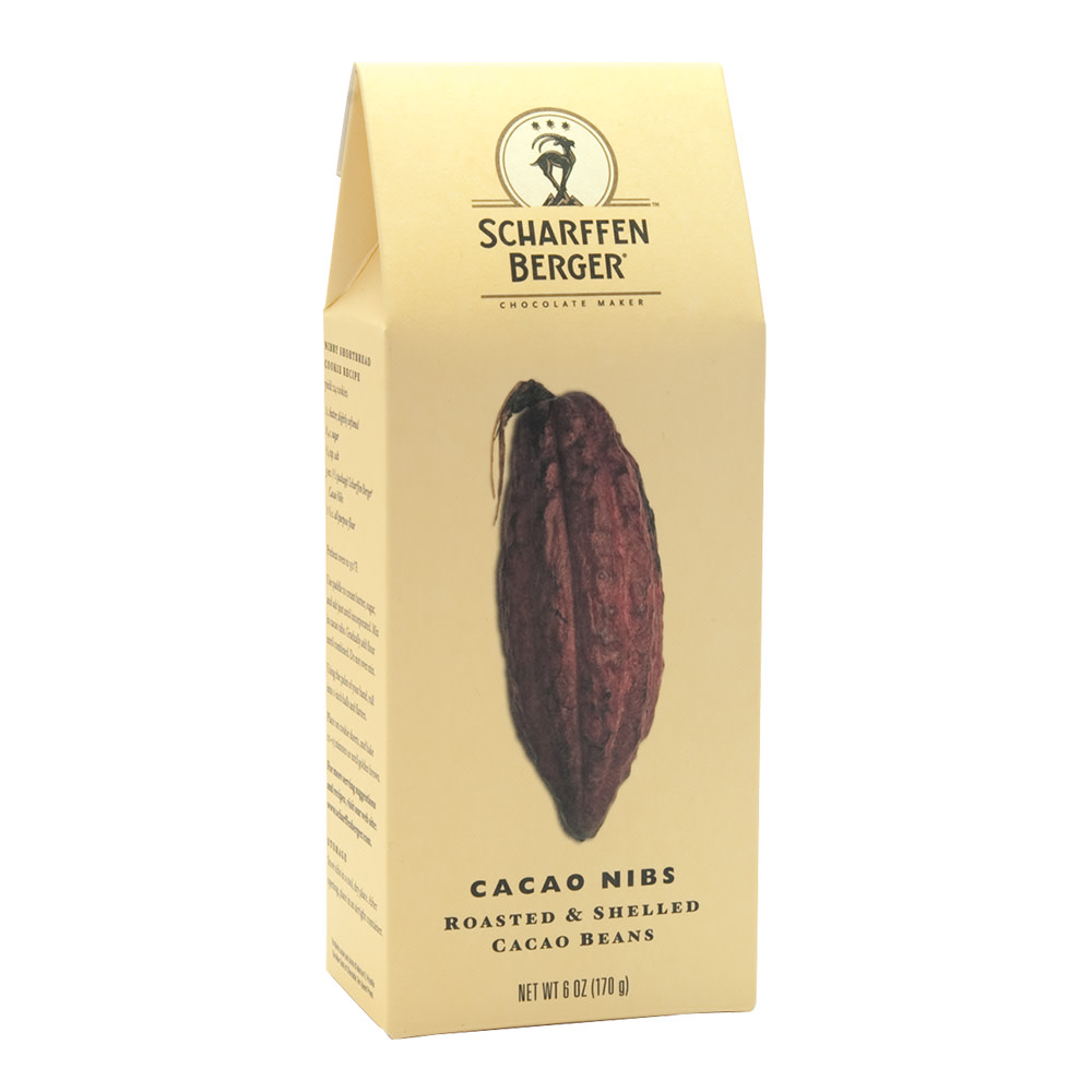 - The manufacturer of Cacao Nibs Roasted & Shelled Cacao Beans is Scharffen Berger.