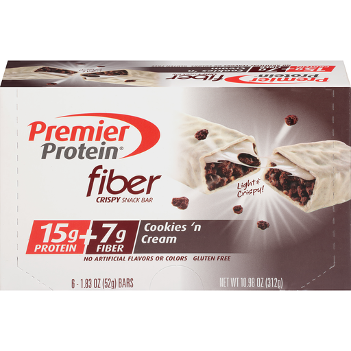 Premier Protein Fiber Bar Protein Blend (Soy Protein Isolate, Milk Protein Isolate), Polydextrose, Sugar, Glycerine, Palm Kernel Oil, Maltitol Syrup, Inulin, Cocoa Powder (Processed with Alkali), Corn Syrup, Nonfat Dry Milk Solids, Tapioca Starch, Chocolate Liquor, Contains 2% or Less of the Following: Whole Milk Solids, Soy Lecithin (an Emulsifier), Natural Flavors, Salt, Vanilla Bean, Guar Gum, Sucralose, Vanilla Extract.