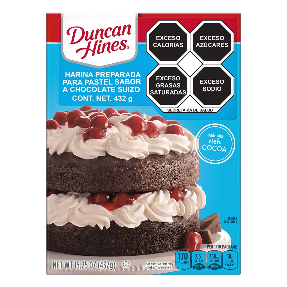Duncan Hines Signature Perfectly Moist Swiss Chocolate Cake Mix makes a moist and delicious Swiss chocolate cake that is sure to become a family favorite. Made with rich cocoa, the smooth and velvety cake batter makes it easy to bake a perfectly moist cake every time. Simply add water, eggs and vegetable oil to the baking mix and stir to combine. Pour into a pan and bake for the recommended time in the instructions. Prepare this Swiss chocolate cake mix to make a simple Swiss roll, a decadent layer cake with cream cheese frosting or add sprinkles for a festive birthday cake. You can also use it as a cupcake mix, or to make fun cake creations like cake pops. This certified Kosher boxed cake mix makes two 8 or 9 inch round cakes, one 13 x 9 inch sheet cake or 24 cupcakes. From birthday cake to single serve desserts, Duncan Hines has you covered when you're ready to bake and create. Bake someone happy!
