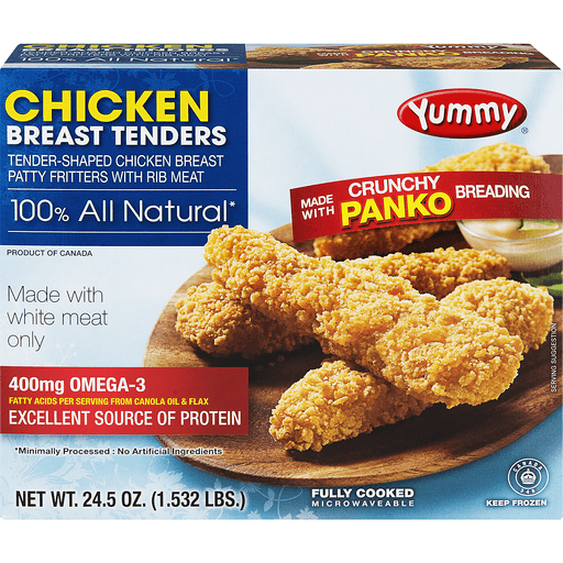 - The manufacturer of Yummy, Tender-Shaped Chicken Breast Patty Fritters with Rib Meat is Yummy.