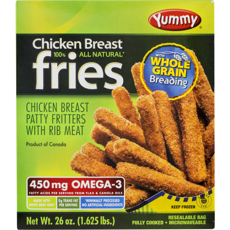 - The manufacturer of Chicken Breast Fries is Yummy.