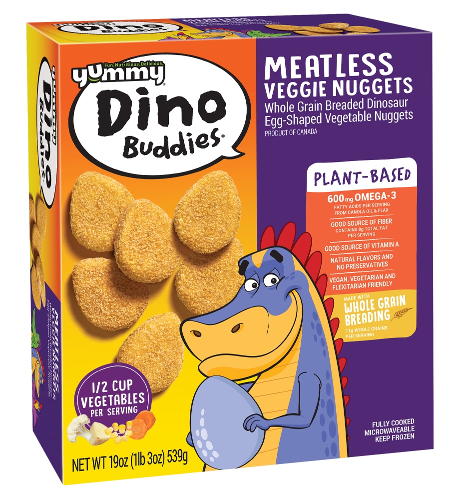 - The manufacturer of Meatless Veggie Nuggets Whole Grain Breaded Dinosaur Egg-Shaped Vegetable Nuggets is Yummy.