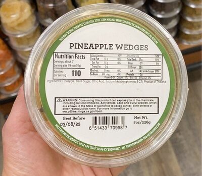 - The UPC barcode for Pineapple Wedges is 0651433709987.