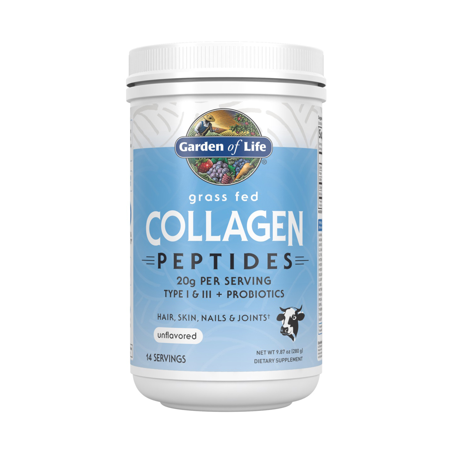 Grass Fed Collagen Peptides provides an easy way to add highly absorbable collagen to your daily diet. It’s unflavored and perfect for shakes, smoothies, coffees, drinks or can be used in baking. One scoop conveniently delivers 20g of collagen peptides and is great for anyone looking to improve skin elasticity, nail and hair strength and joint mobility.†. Collagen—The Garden of Life Difference. Collagen is the most abundant protein in the human body and is often described as the glue that holds everything together. As we age, our body’s natural production of collagen, a protein essential to overall health and appearance, declines. Garden of Life now offers three Grass-Fed Collagen products to meet your specific needs. The entire line is Non-GMO Tested and Certified, Keto Certified and NSF Gluten Free. Whether it’s fortifying hair, skin and nails† or supporting healthy joints and mobility† we have the clean, convenient answer in our collagen powders.