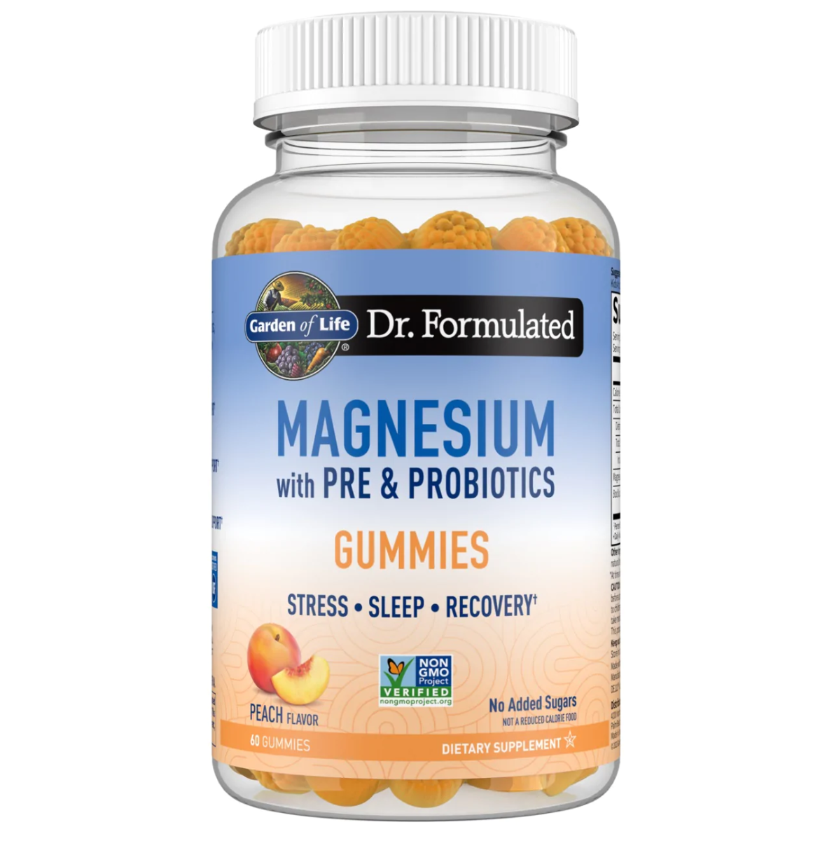 A Magnesium Gummy in Delicious Peach Flavor—Winning! The benefits of having an adequate amount of magnesium in your body are abundant. In addition to helping with stress and sleep, magnesium is also known to support heart, muscle, and bone health.† And now, with Dr. Formulated peach flavor magnesium gummies, it’s easier to help fill the gap that you may not be getting in your diet. Each delicious peach-flavored gummy is made with bioavailable magnesium which, in studies, was shown to be superior for absorption. Made with citrus pectin and no added sugars, a full 4-gummy serving of Dr. Formulated Magnesium Gummies contains less than 1g sugar. We also added beneficial prebiotics which help feed the probiotics that are also included in these gummies—1 Billion CFU of clinically studied Bacillus subtilis DE111®.