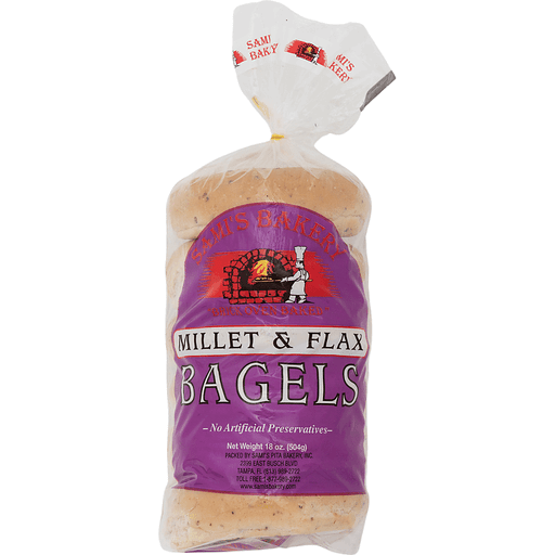 - The manufacturer of Millet & Flax Bagels is Sami'S Bakery.