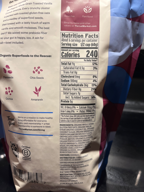 - The manufacturer of Whole-Grain Granola Toasted Vanilla Crunch is Thrive Market.