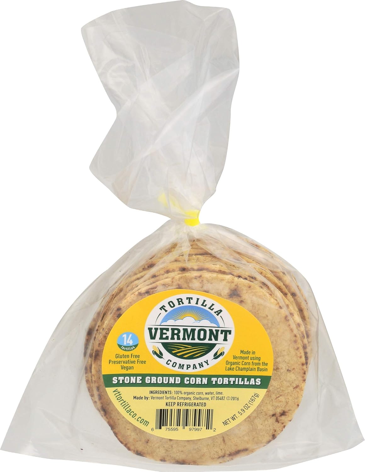 Vermont Tortilla Company stone ground corn tortillas are made with just three simple ingredients for a natural flavor. We combine organic corn, water and lime to make our light and airy tortillas, giving you a food you can feel good about. Use the tortillas for tacos or your favorite mexican-inspired dishes. This package contains 5.9 ounce of tortillas.