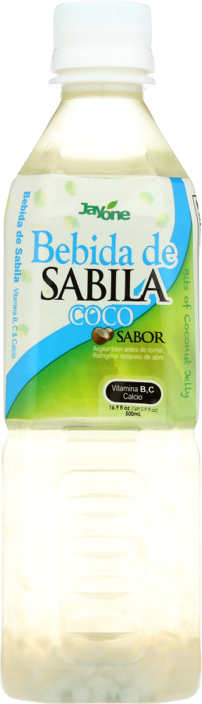 Bits of coconut jelly. Vitamin B, C. Calcium. Vitamin B, C & calcium. Please recycle. Jayone Aloe Drink is sweet, refreshing drink made using real bits of aloe. Our Aloe Drink is full of real aloe vera and coconut with vitamin B and vitamin C. Enjoy this cool, refreshing drink! Taste what aloe has to offer! Contains vitamin B and C. www.jayone.com. Product of Korea.