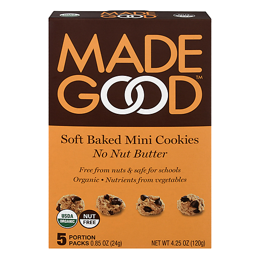 - The manufacturer of No Nut Butter Soft Baked Mini Cookies is MadeGood.