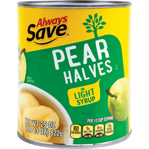 - The manufacturer of Pear Halves in Light Syrup is Always Save.