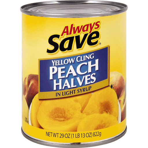 - The manufacturer of Yellow Cling Peach Halves in Light Syrup is Always Save.