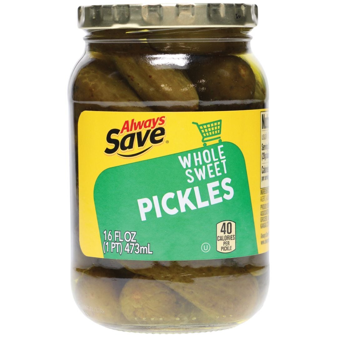 - The manufacturer of Whole Sweet Pickles is Always Save.
