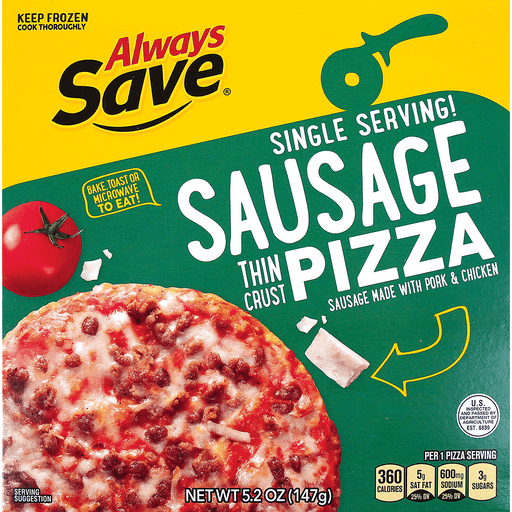 - The manufacturer of Sausage Thin Crust Pizza, Sausage is Always Save.